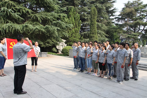 “我志愿加入中國共產(chǎn)黨,擁護黨的綱領(lǐng),遵守黨的章程,履行黨員義務(wù)……”20名新黨員在辛亥革命烈士紀(jì)念園內(nèi),面對黨旗舉起右手,莊嚴(yán)地向黨作出鄭重而響亮的承諾。為紀(jì)念建黨92周年,7月1日上午,公司黨委組織新黨員在辛亥革命烈士紀(jì)念園舉行了宣誓儀式。